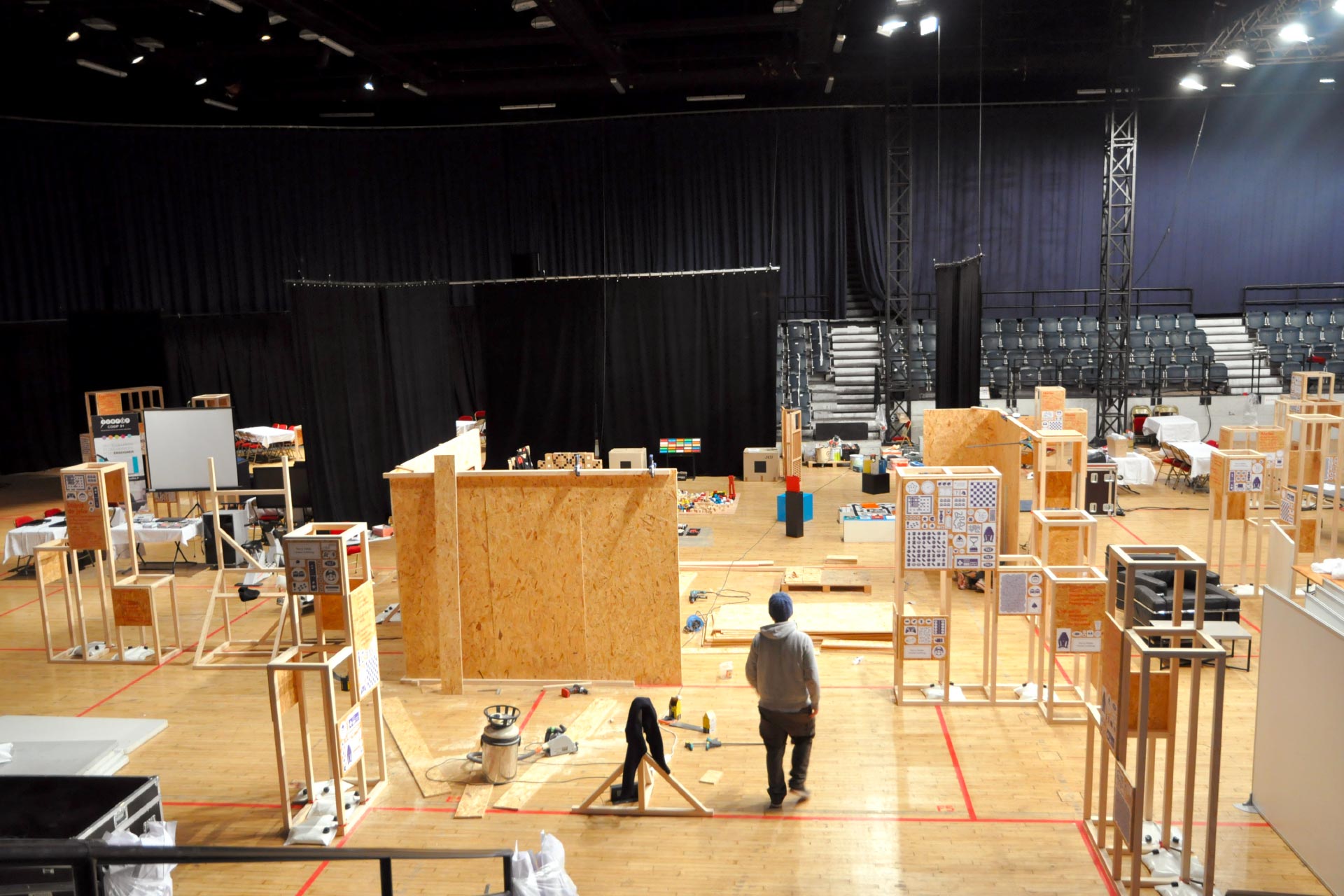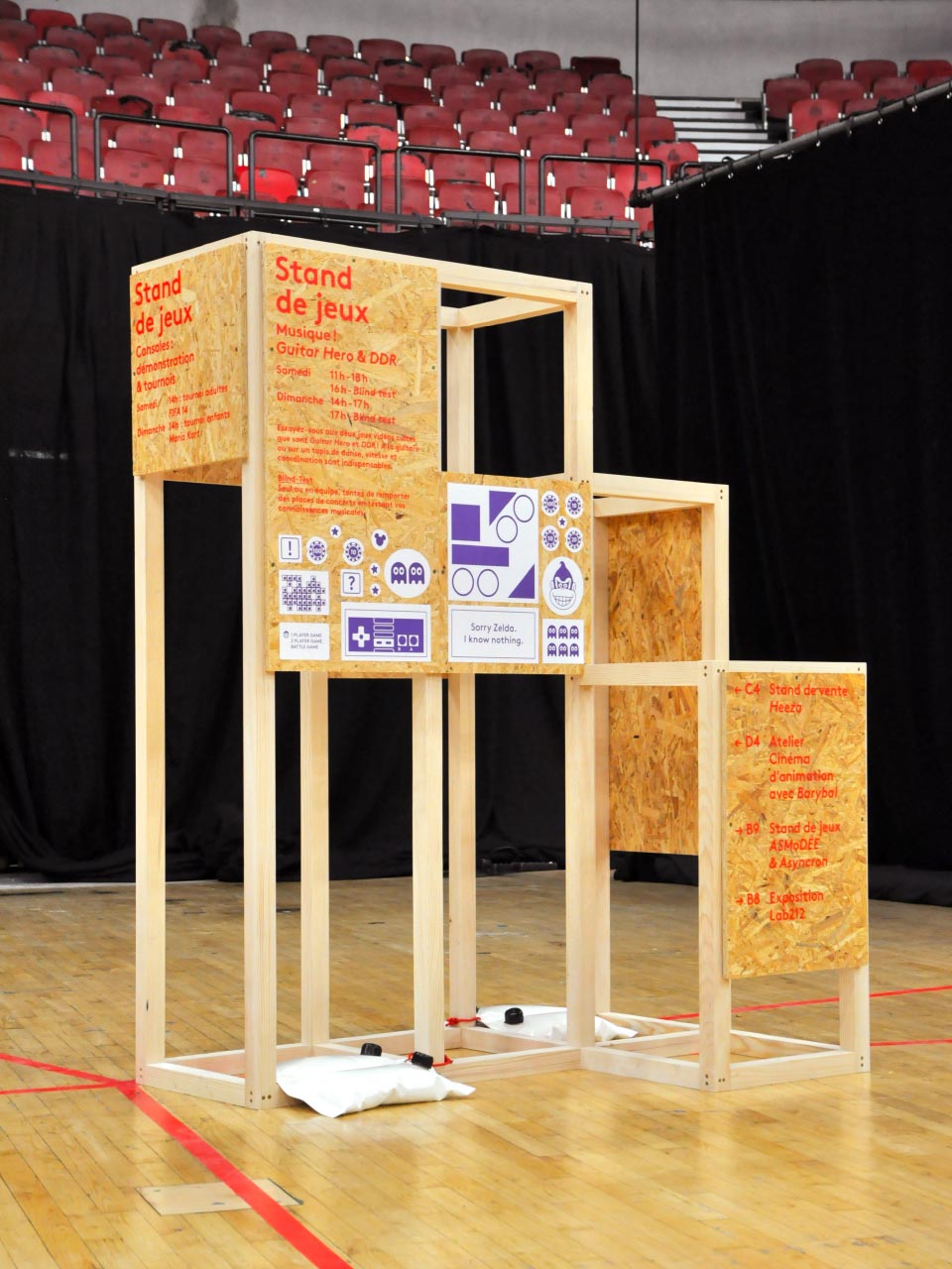 Signalétique événementielle, mobilier, 2008 Réseau de médiathèques de la ville d’Évry, Arènes de l’agora, Évry